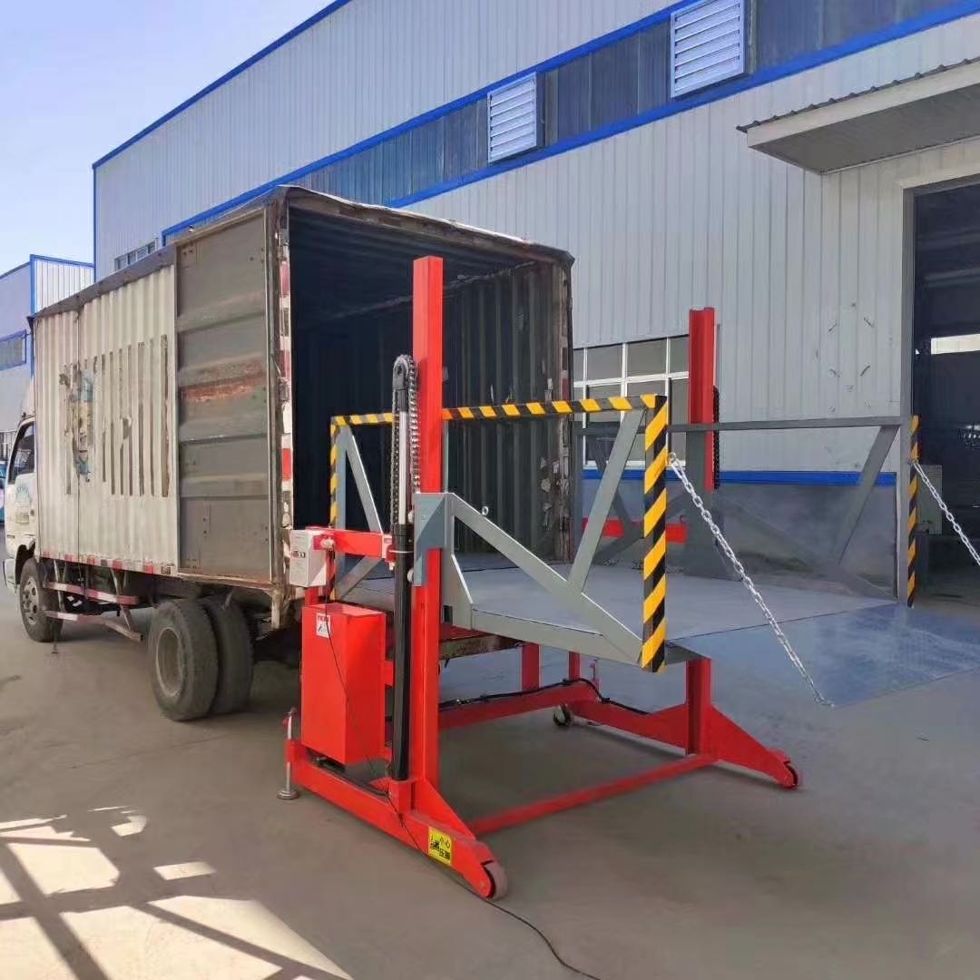 移動式裝卸貨平臺用于配合貨車裝卸貨物。設(shè)備上的翻板對接貨車尾部,可以提升2噸的貨物,底部輪子移動行走, 屬于流動式的登車橋,大大利用工廠實際使用空間,提高裝卸貨的效率,減少人工成本。